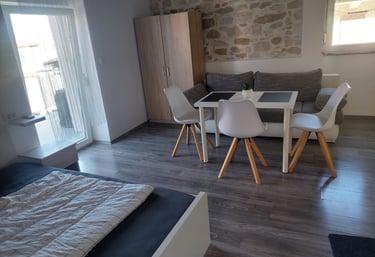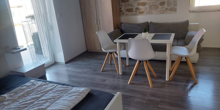 Studio-apartman 2+1 savršen je za parove ili malu obitelj koja traži miran i udoban smještaj. Apartman je moderno uređen i potpuno opremljen za kratak ili duži boravak.